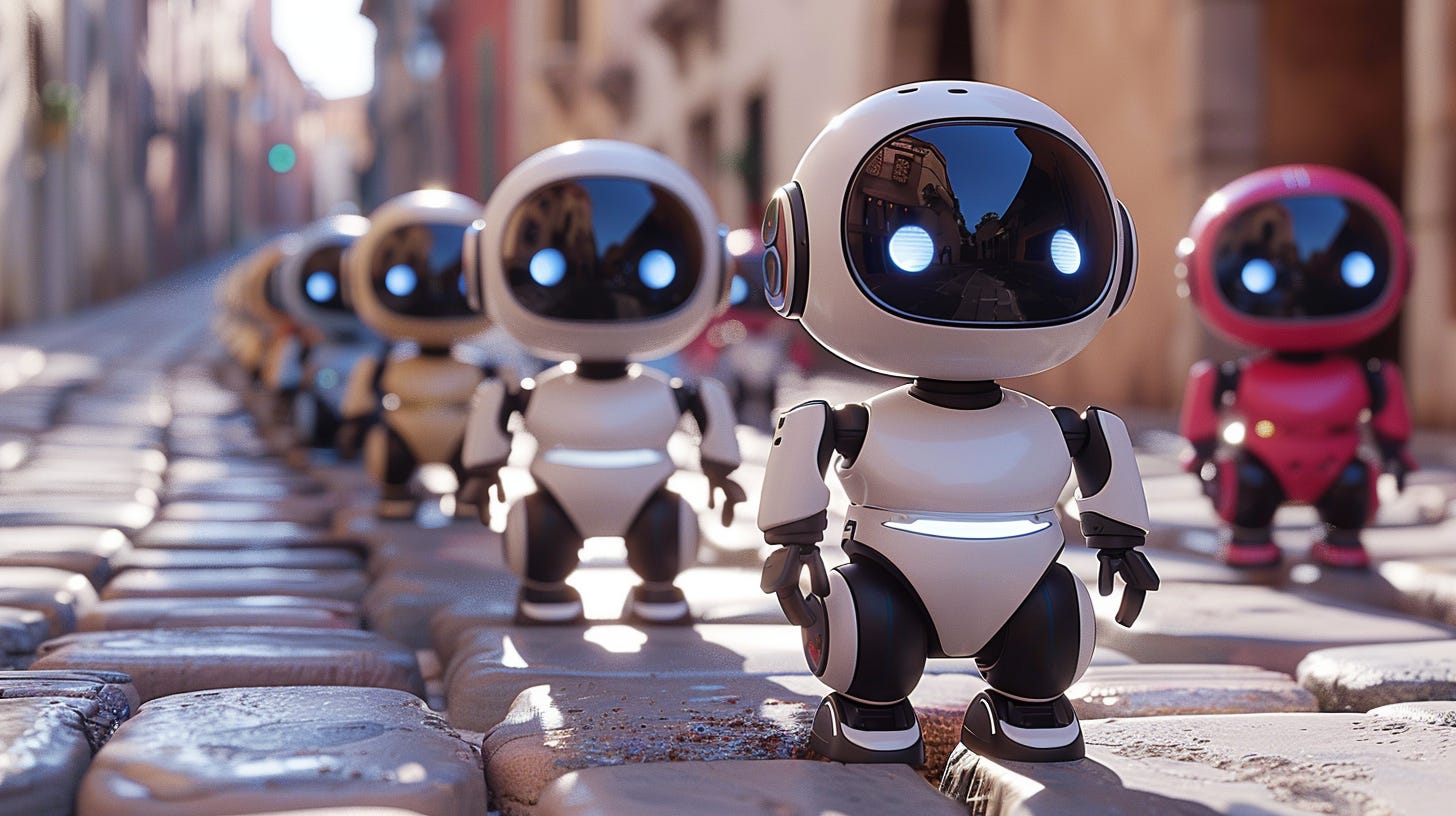 A team of friendly robots (made with Midjourney).